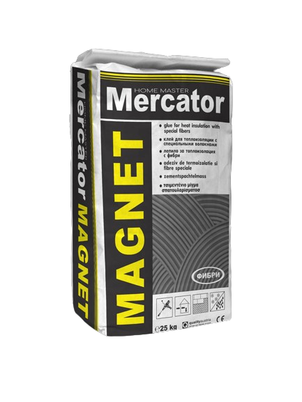 Mercator Magnet е неорганично свързано лепило, подсилено със специализирани фибри за по-висока якост на свързване и издръжливост.